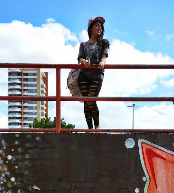 Pra quem me conhece, sabe que eu tenho um amor por essa blusa, uso demais mesmo, acho ela muito linda e combina com todas as peças do meu guarda - roupa. Já fiz até um postagem de look do dia com ela. E pra deixar o look bem despojado vesti essa legging destroyed, galera ela não era assim, eu mesma taquei a tesoura nela rs.